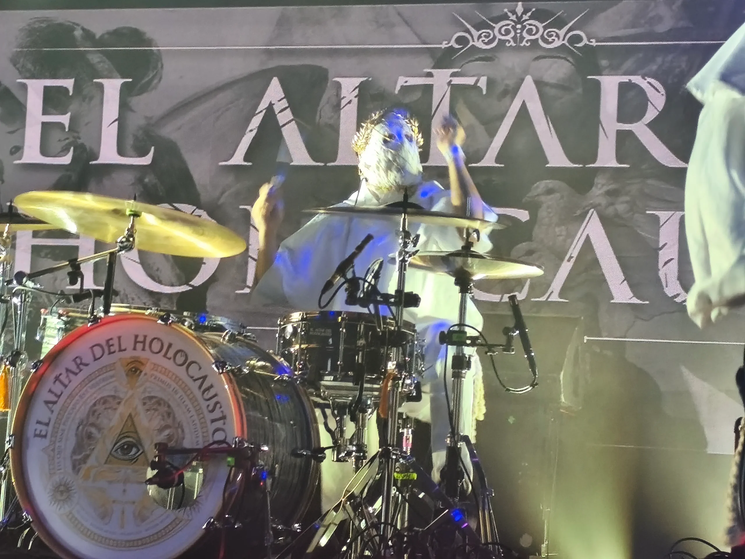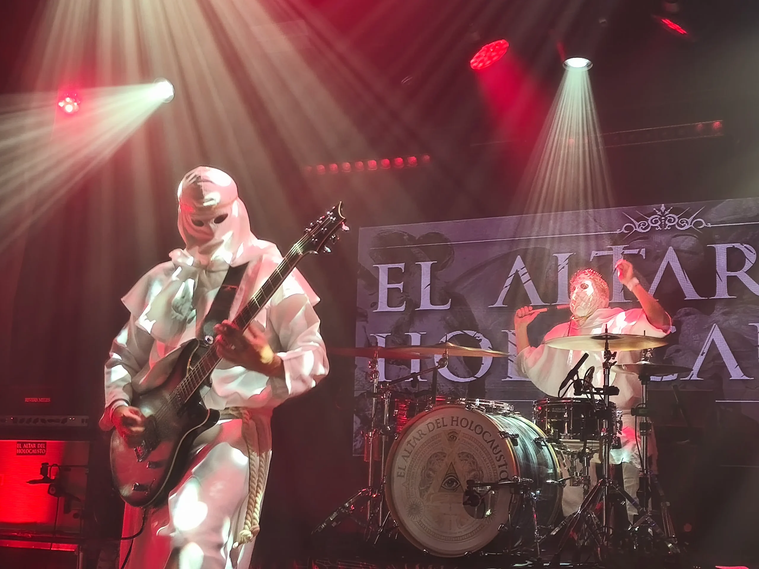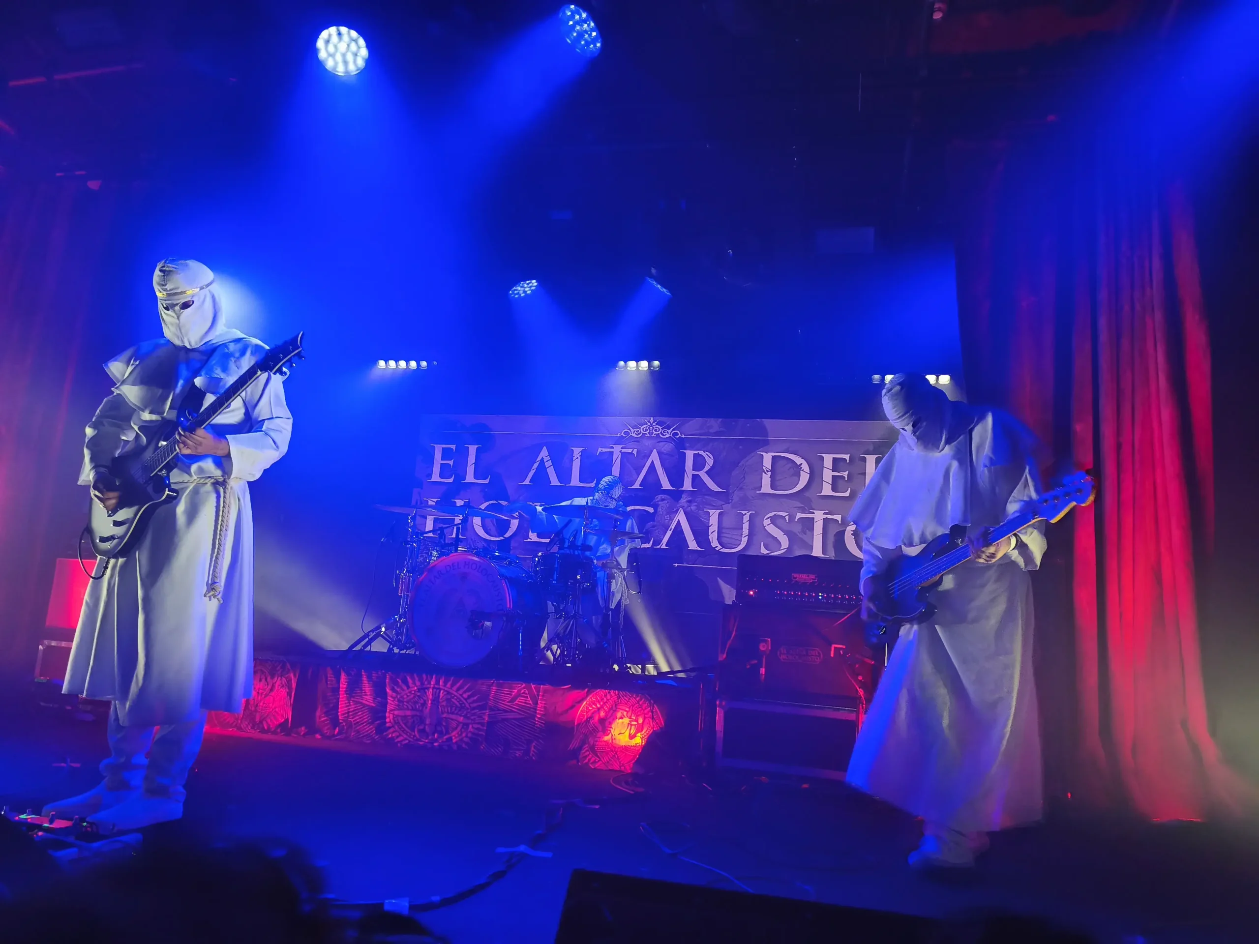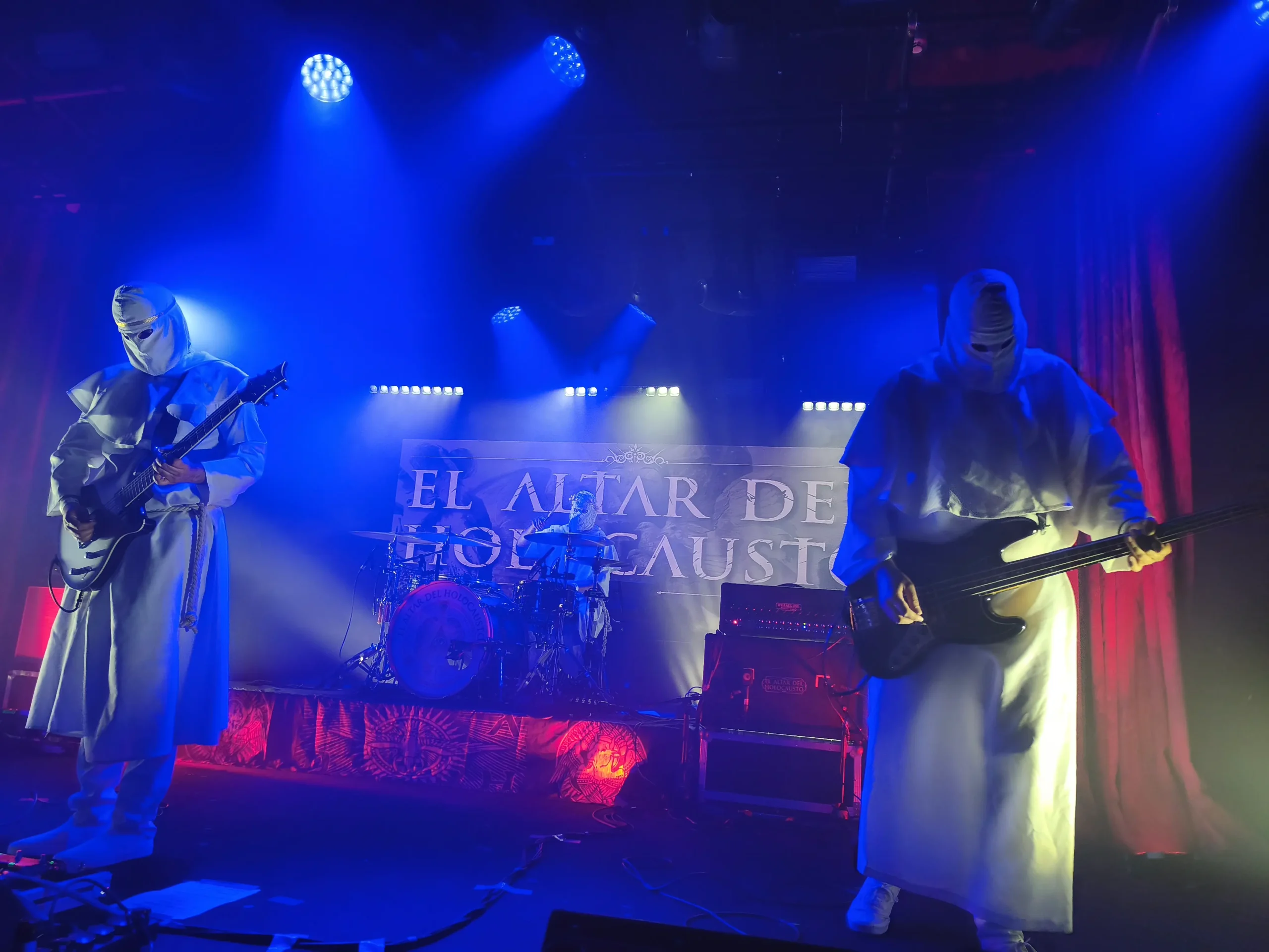 "Act II - Resvrrectionem" de su ep digital homónimo continuó elevando el griterío y el ansia viva en el personal ante semejante ejecución y sonido hasta completar la tetralogía inicial de la Homilía con "Caridad" (procedente de "Trinidad") y "Amen" (el single más reciente editado por el combo en Noviembre de 2024). A estas alturas del show y con lo que llevábamos en nuestras espaldas la entrega era total y absoluta. Demasiado expresiva en ocasiones para mi gusto. Más de una vez en los pasajes más lentos y clarividentes los propios componentes de El Altar Del Holocausto tenían que pedir silencio y calma con gestos.