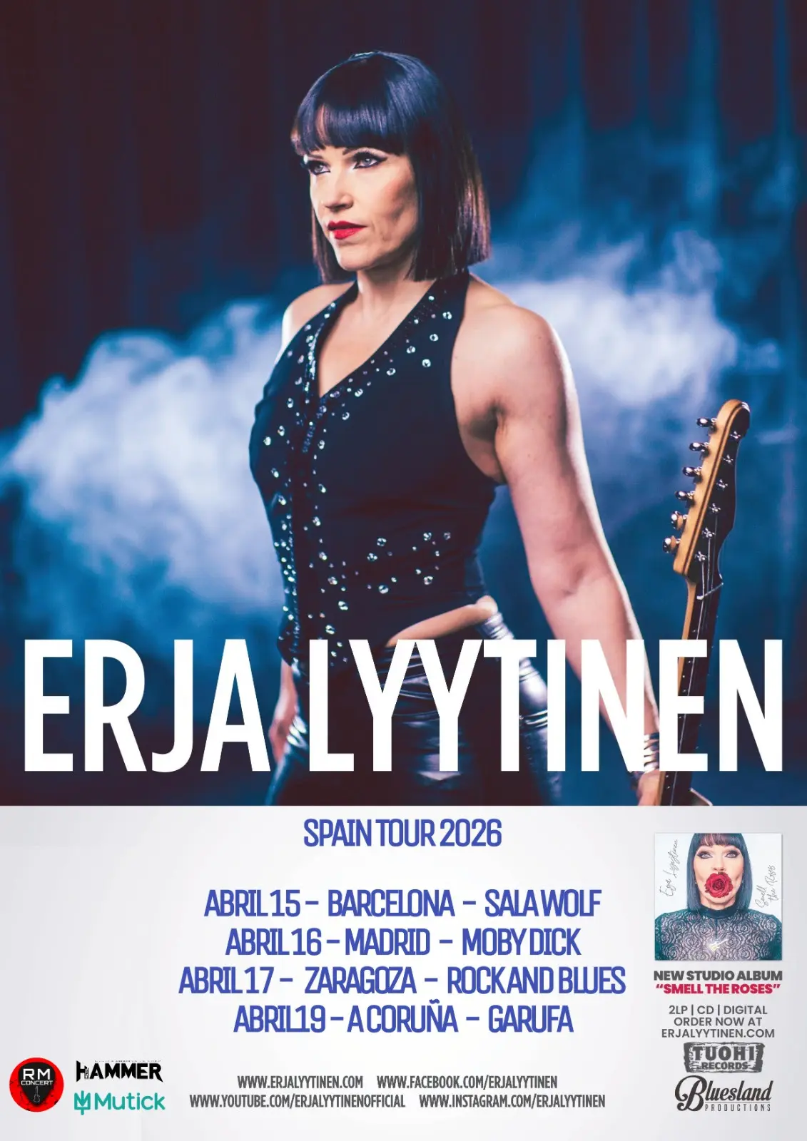 La virtuosa guitarrista finlandesa Erja Lyytinen, conocida como la reina del slide en Europa, llegará a España este mes de Abril ofreciendo conciertos en cuatro ciudades. Con más de 20 años de carrera, ha compartido escenario con leyendas como Carlos Santana y ha sido reconocida como Mejor Guitarrista de Blues en los European Blues Awards.
