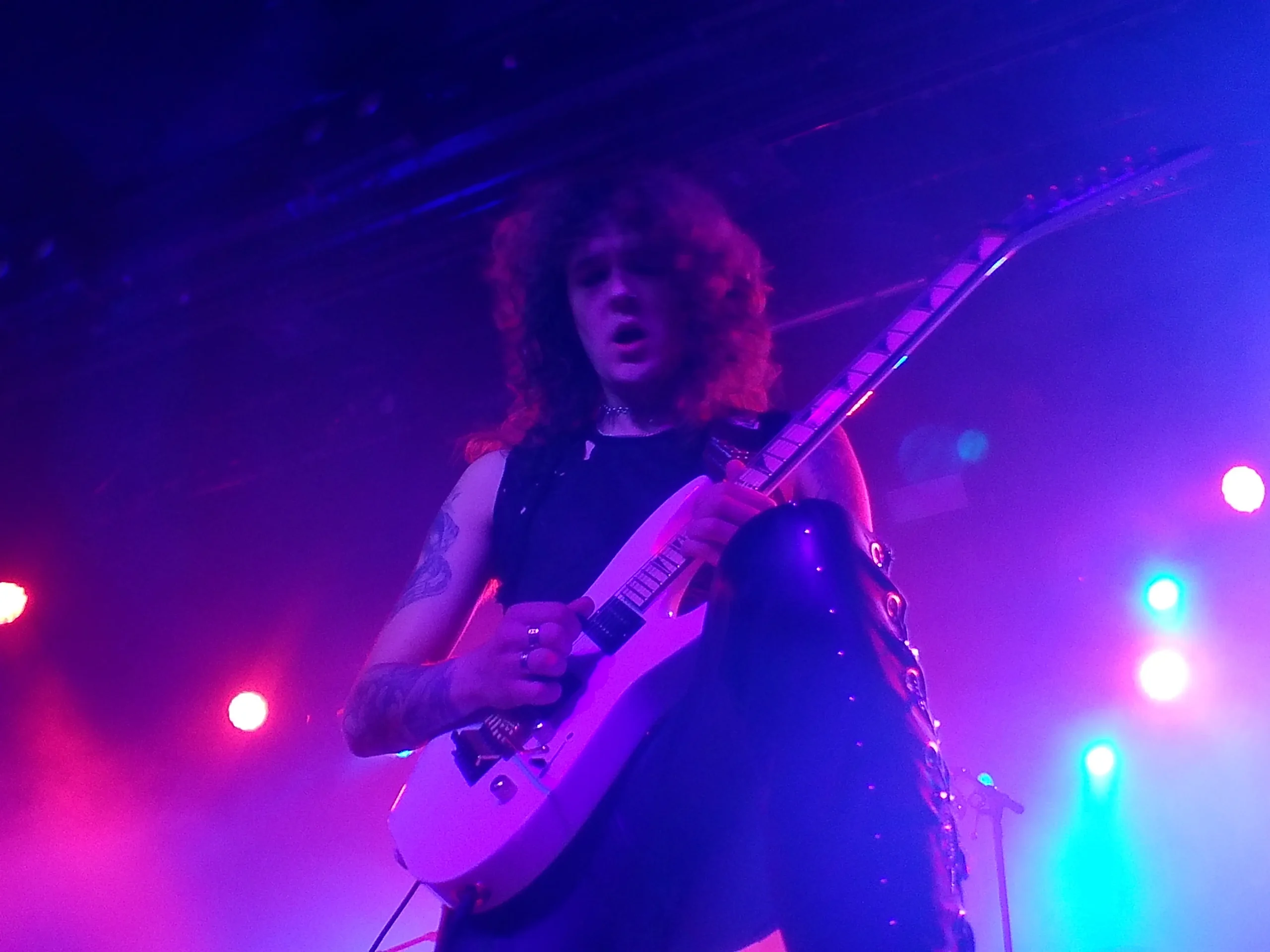 Liderados a la voz por Craig Cairns, nos ofrecieron a continuación un doblete de temas de su début: "White Death" y "Shadows of War". La base rítmica de Thomas Hewson a las cuatro cuerdas y Eddie Mariotti a la batería mantuvieron un ritmo constante y efectivo durante todo el repertorio. Y destacaron sobremanera sus dos guitarristas, Zach Salvini y la jovencísima Jara Solís. Ésta última perteneciente a la banda Hunger, y que está sustituyendo en esta primera parte de la gira a la guitarrista original Rhea Thompson, quién se encuentra de baja provisional por problemas físicos y que se espera se reincorpore a la formación a finales del mes que viene.