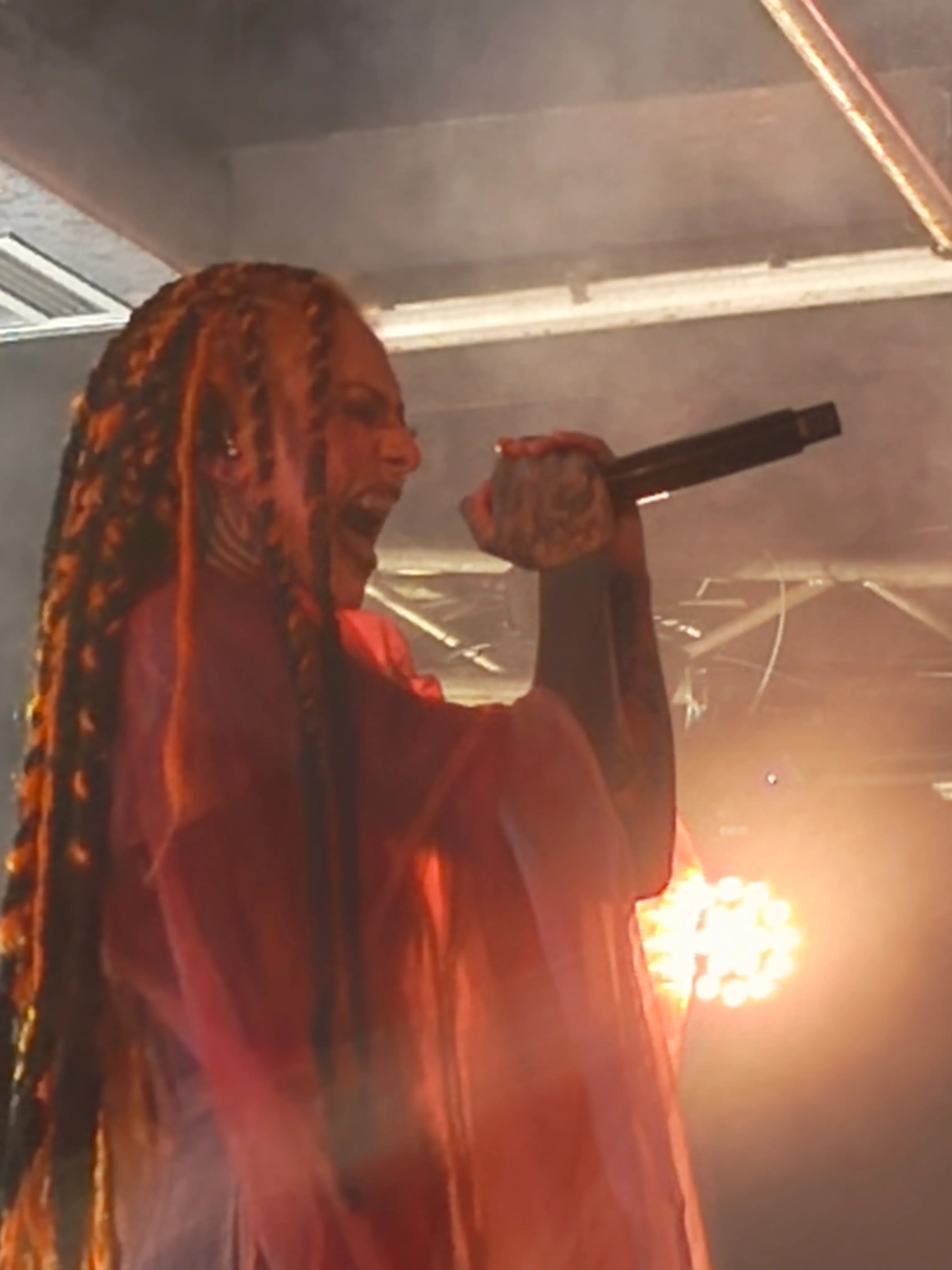 De hecho esos dos temas sonaron durante su repertorio, amén de canciones de toda su trayectoria. Había curiosidad por ver cómo la banda se desempeñaba sobre un escenario solamente con uno de sus dos pilares fundacionales pero lo cierto es que visto lo visto, la buena de Shepperd se basta y se sobra para ofrecer actuaciones brillantes. Con una energía desbordante, un no parar sobre las tablas, una comunicación excepcional con el público y su buen hacer a la voz, Butcher Babies nos ofrecieron una hora de concierto que se pasó volando. La propia Heidi llegó a dividir el público en dos en una de sus últimas canciones y bajarse del escenario a la pista para cantar el final del tema mientras el respetable bailaba un mosh pit alrededor de ella. Resultaba bastante impactante la imagen.