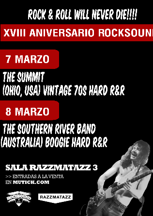 Este año se traslada el aniversario a marzo con dos propuestas irresistibles. Primero The Summit y lo que ellos definen como Hard Vintage Rock and Roll, y luego The Southern River Band y su Boogie Hard ¡Casi nada!