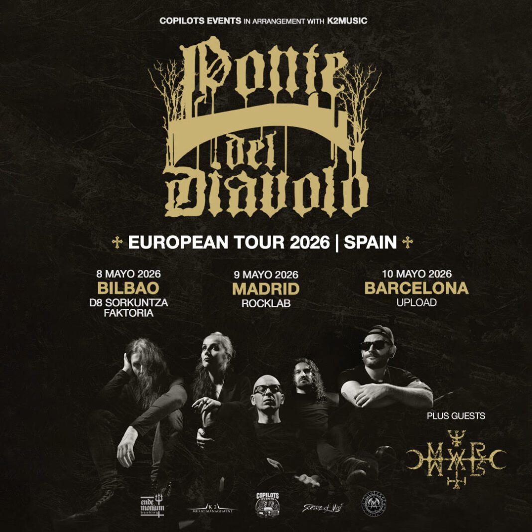 Gracias al esfuerzo de los compañeros de Copilots Events, el grupo italiano de Doom-Black Metal Ponte Del Diavolo ha confirmado su primera gira española. En esta visita realizará tres conciertos, acompañados por Murmur y Viaducto en Madrid, mientras que en Bilbao y Barcelona estarán acompañados por WhiteDemon.