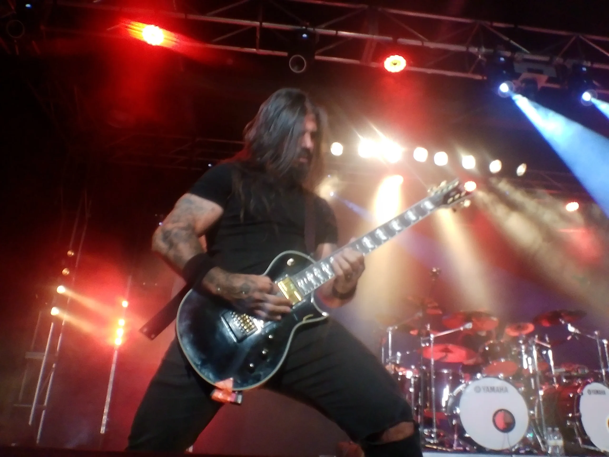 Trece temas como trece soles nos regalaron los filandeses. Abrieron con "Ancient Cold" y "Ghosts of Karelia" y ahí ya se me caían los pantalones al suelo mientras hacía las fotos desde dentro del foso. El impertérrito SAUKKONEN (sí, de nuevo en mayúsculas) desgranaba riffs mientras que su compañero a la guitarra solista Vagelis Karzis y el divertido y súper comunicativo bajista Lauri Silvonen le acompañaban en la ejecución de las canciones contribuyendo con unas vocales excepcionales mientras su batería Joonas Kauppinen machacaba la caja, los bombos y los platillos de su instrumento sin miramiento alguno. "The King", "Zero Gravity" o "Cold Flame" explotaban nuestros tímpanos. Pero como bien dijo Silvonen en la presentación de ciertas canciones, habían querido incorporar temas diferentes a su repertorio al haber estado de gira el año anterior y nos sorprendieron con la primera interpretación en vivo de su historia de "Fires of the Fallen" y "Carnivore" con el añadido de "Valkyrie", que no tocaban en vivo desde hace cinco o seis años. ¿Se puede pedir más?. Sí, que terminaran con himnos como "The Hunt" y "The Hammer".
